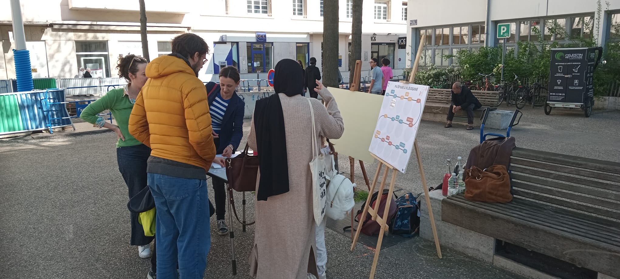 Cet atelier permet d’interpeller les habitants sur les services publics : Il s’agit de proposer aux personnes de raconter leur semaine type et de s’interroger à quelle institution dépend les actions correspondantes en particulier ville ou métropole.